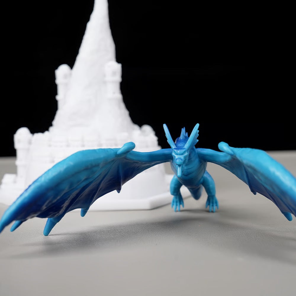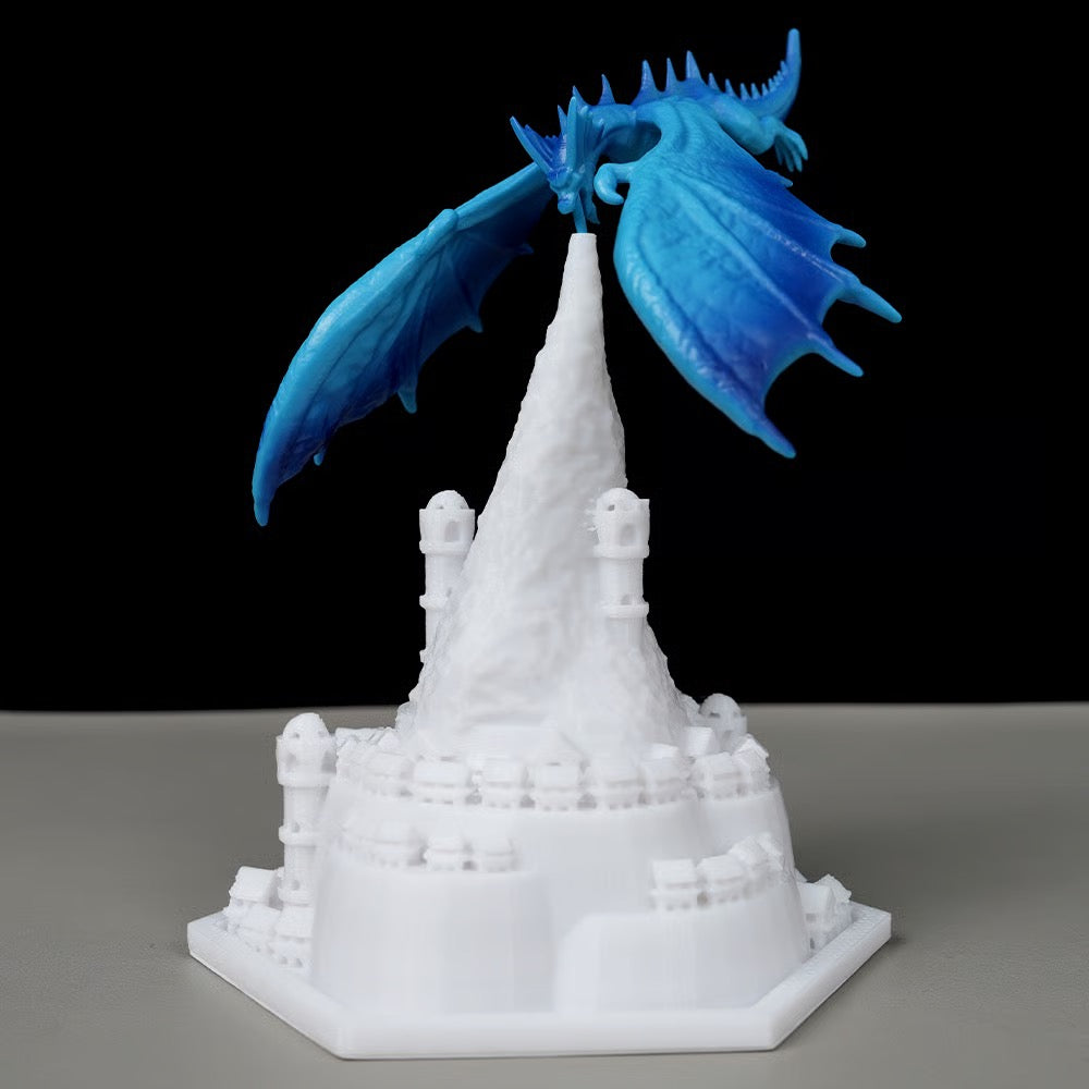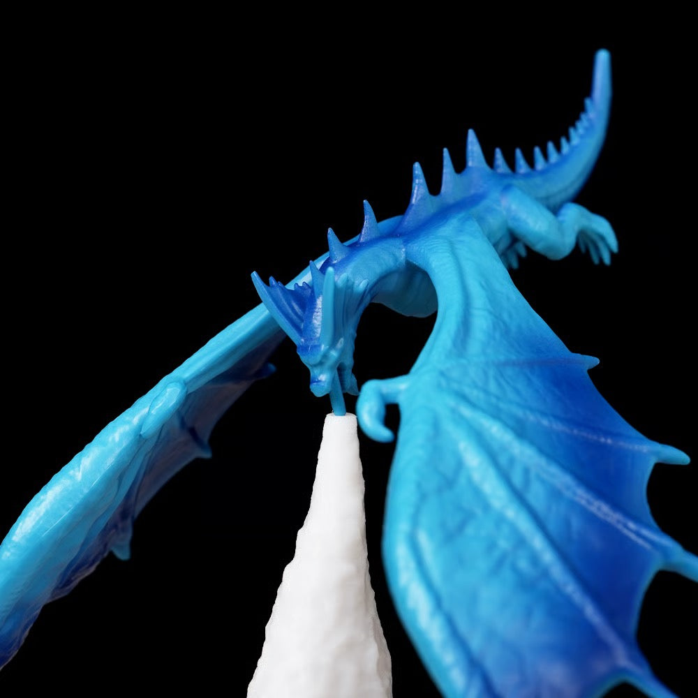 A stunning 3D-printed dragon balancing gracefully, symbolizing strength and elegance.