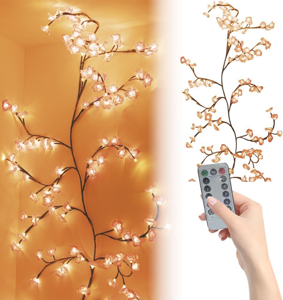 - 【DIY Flexible Branches】This Cherry blossoms branch with lights is flexible and bendable. You can freely shape the branches according to your preferences, create custom designs on the wall, wrap furniture or make unique holiday decorations, perfect for adding personalized designs to your home or holiday decorations.