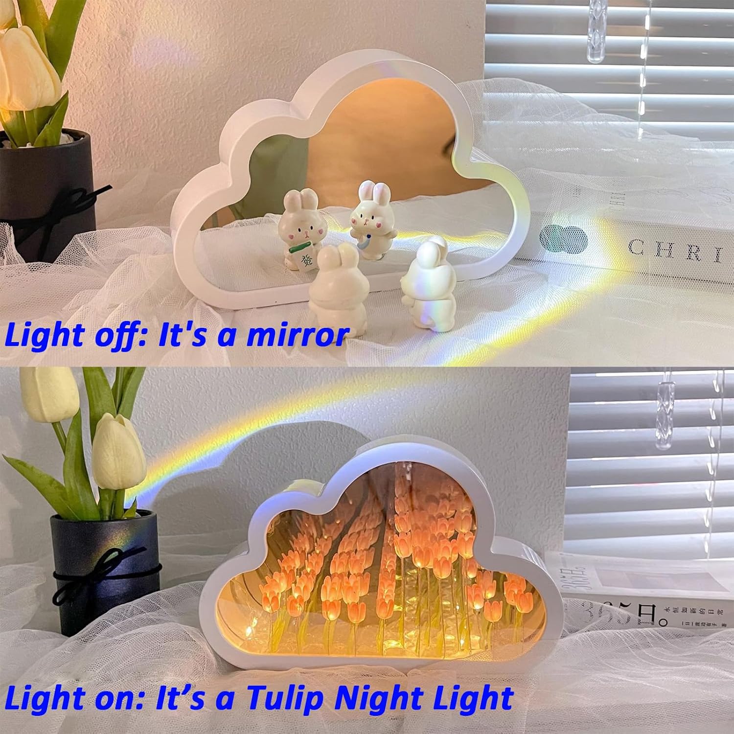 - Ideal Gift for Special Moments: This cloud mirror tulip lamp emerges as a heartfelt gift option for birthdays, anniversaries, Christmas, Thanksgiving, or any special occasion. Its endearing design coupled with its versatile utility renders it a memorable and treasured offering, evoking delight and awe, making it a perfect token of joy for her.