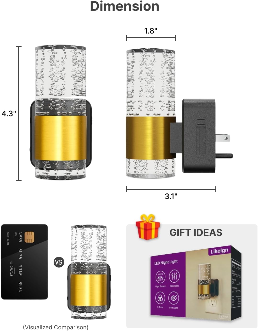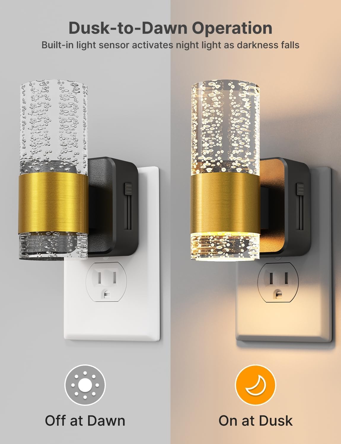 - SMART SENSOR: Features an automatic dusk-to-dawn sensor that activates the night light based on surrounding darkness for hands-free convenience