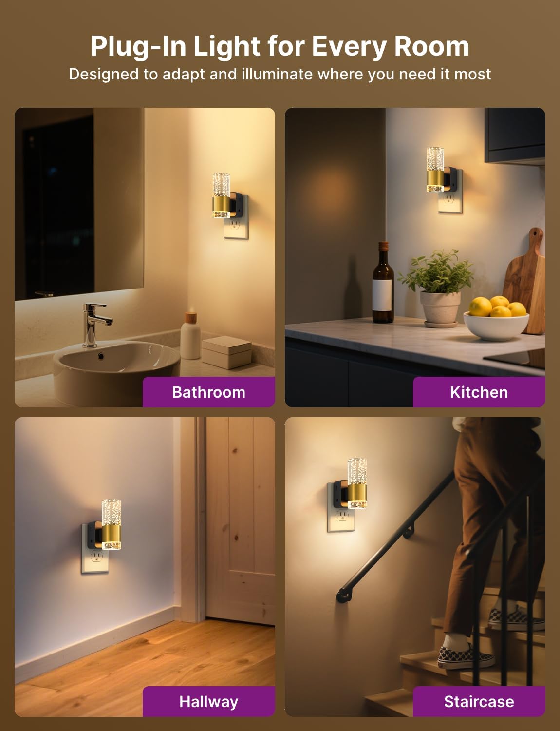 - VERSATILE USE: Compact offset plug design fits any standard outlet, perfect for bathrooms, hallways, kitchens, nurseries, and stairways