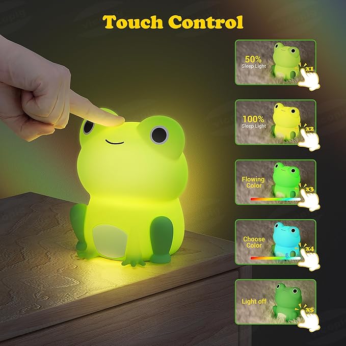 - Cute Frog Design: Inspired by the frog, squishy lamp features soft lighting that is gentle on the eyes, helping to promote a peaceful sleep while adding a playful touch to any room.