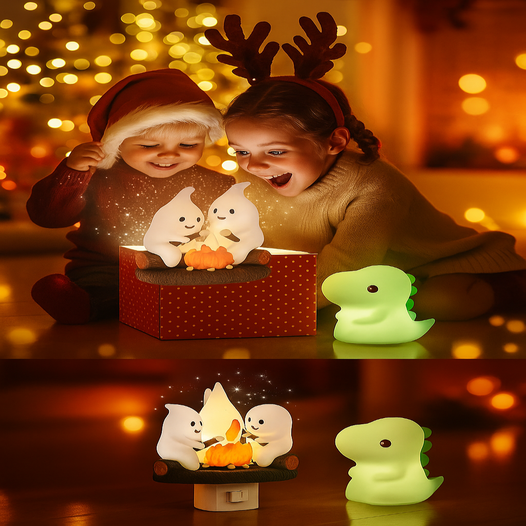On Halloween night, two little ghosts sit around a campfire, roasting marshmallows with cheerful smiles. They’re not here to scare, but to bring warmth and fun into your home. Switch on this night light, and it feels like turning on a little Halloween story, instantly boosting the festive vibe.
